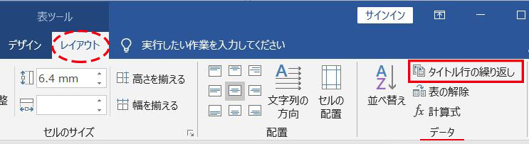 次に、[表ツール]-[レイアウト]タブの「データ」グループにある